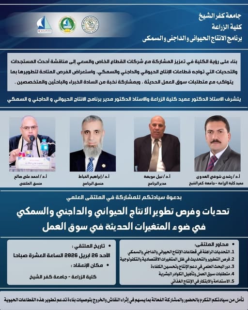دعوة للمشاركة في الملتقي العلمي بعنوان "تحديات وفرص تطوير الانتاج الحيواني والداجني والسمكي"