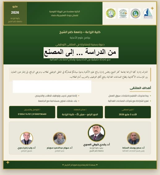 دعوة للمشاركة في الملتقي التوظيفي " من الدراسة .... الي المصنع "