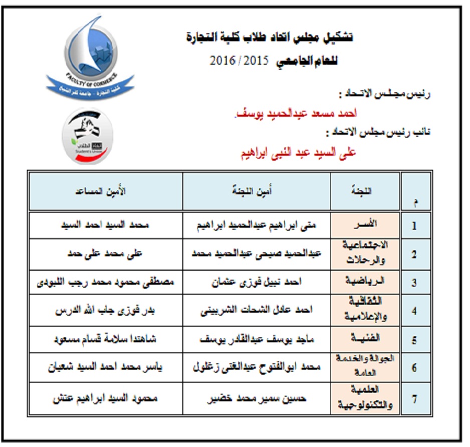 · الأمناء والأمناء المساعدين للجان الاتحاد من الطلاب.