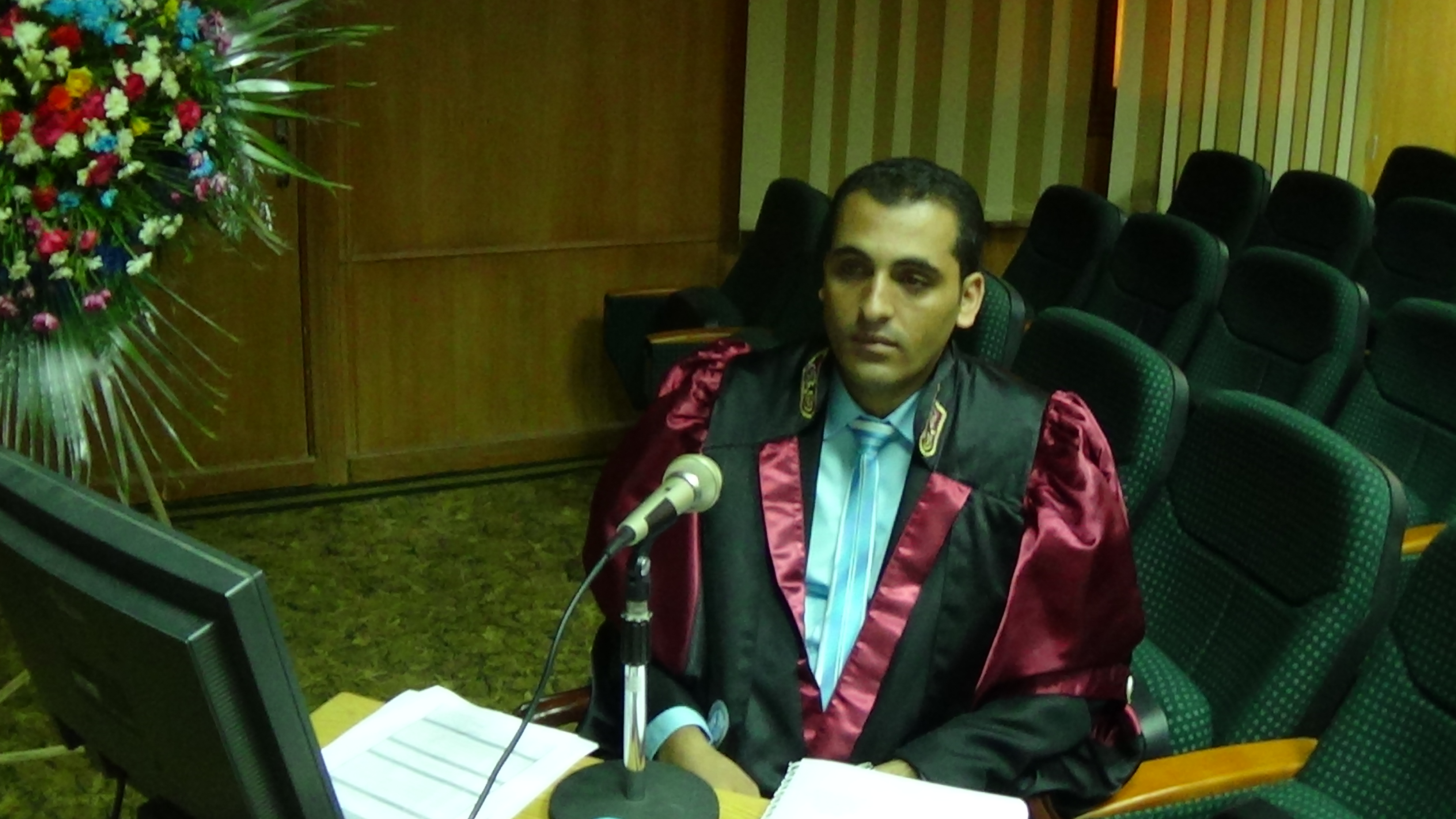 وقد تمت مناقشة الباحث في دراسته التي بعنوان