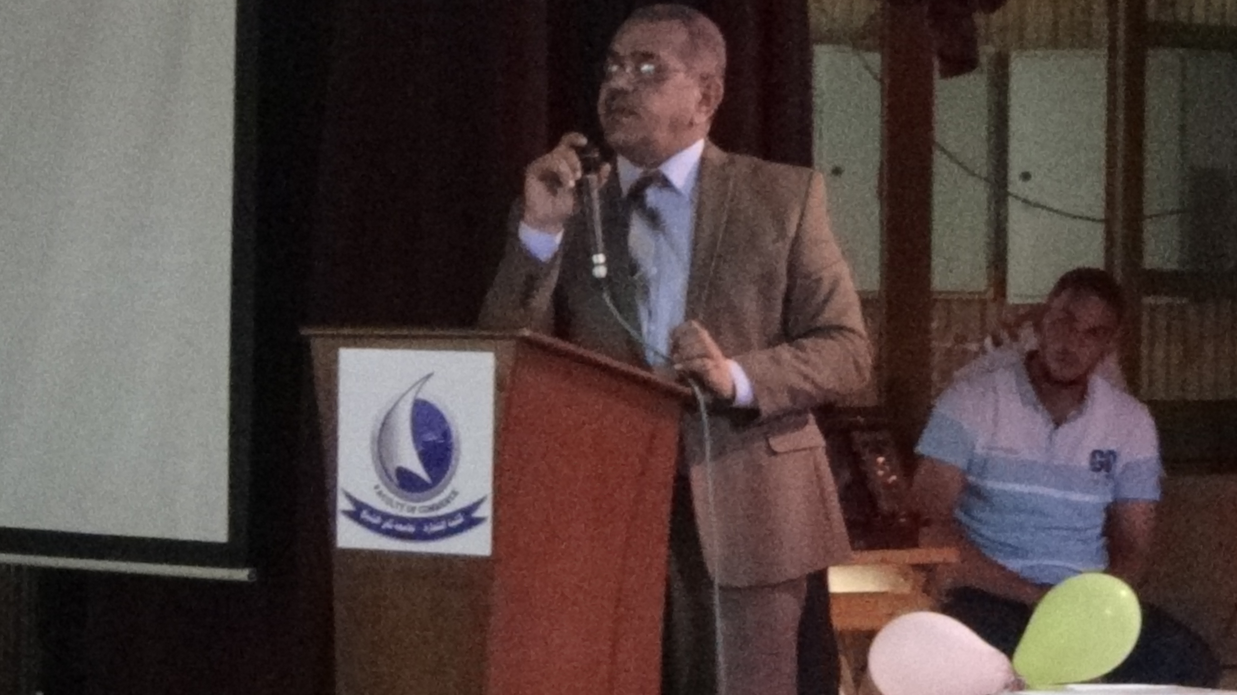 ثم ألقي أ.د/ محمود عبد الحافظ وكيل الكلية لشئون التعليم و الطلاب كلمة إفتتاحية عبر فيها عن ترحيبه بالطلاب الجدد وحثهم علي الأجتهاد العلمي وتحديد الهدف للتفوق .