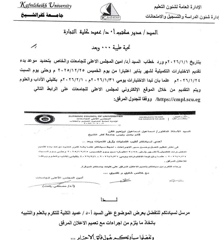 القواعد المنظمة لشئون الدراسة والامتحانات