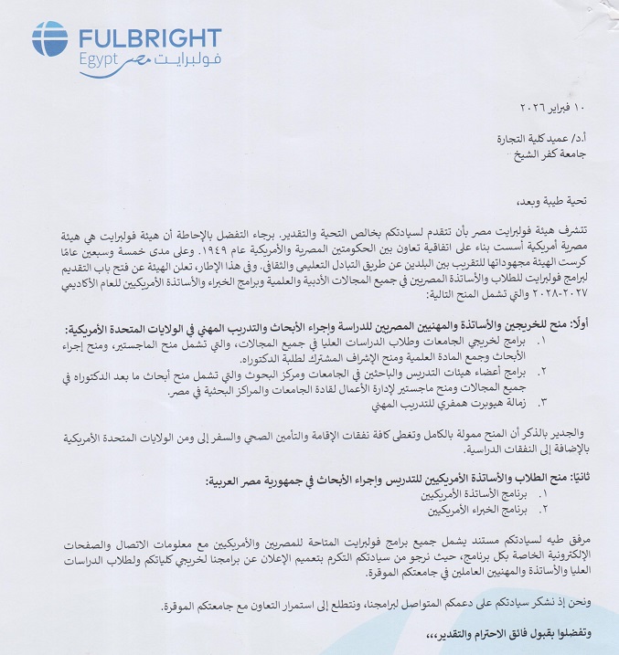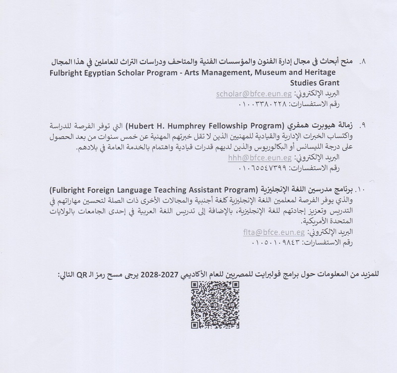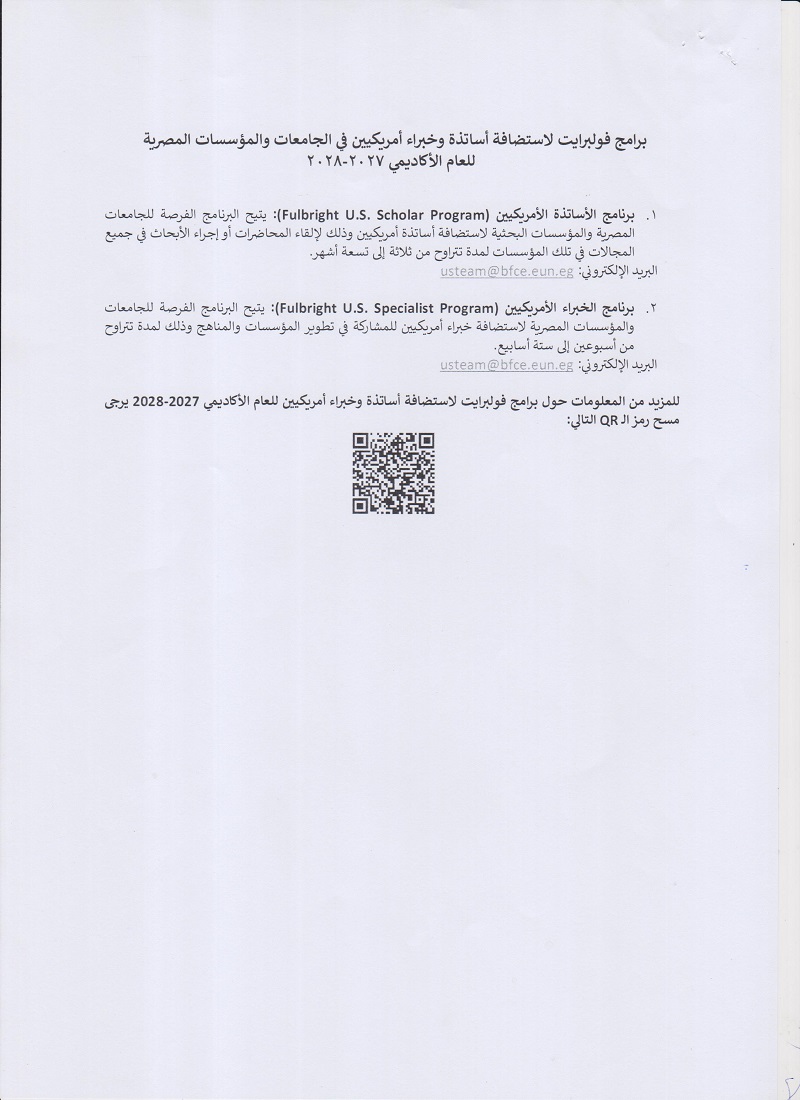 فتح باب التقديم لبرامج فولبرايت للطلاب و الاستاتذه المصريين في جميع المجالات الأدبية و العلمية