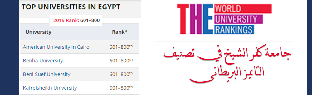 | Kafrelsheikh University Ranks No 101-200 in Times Higher Education World University Rankings 2019 Date: 4/4/2019