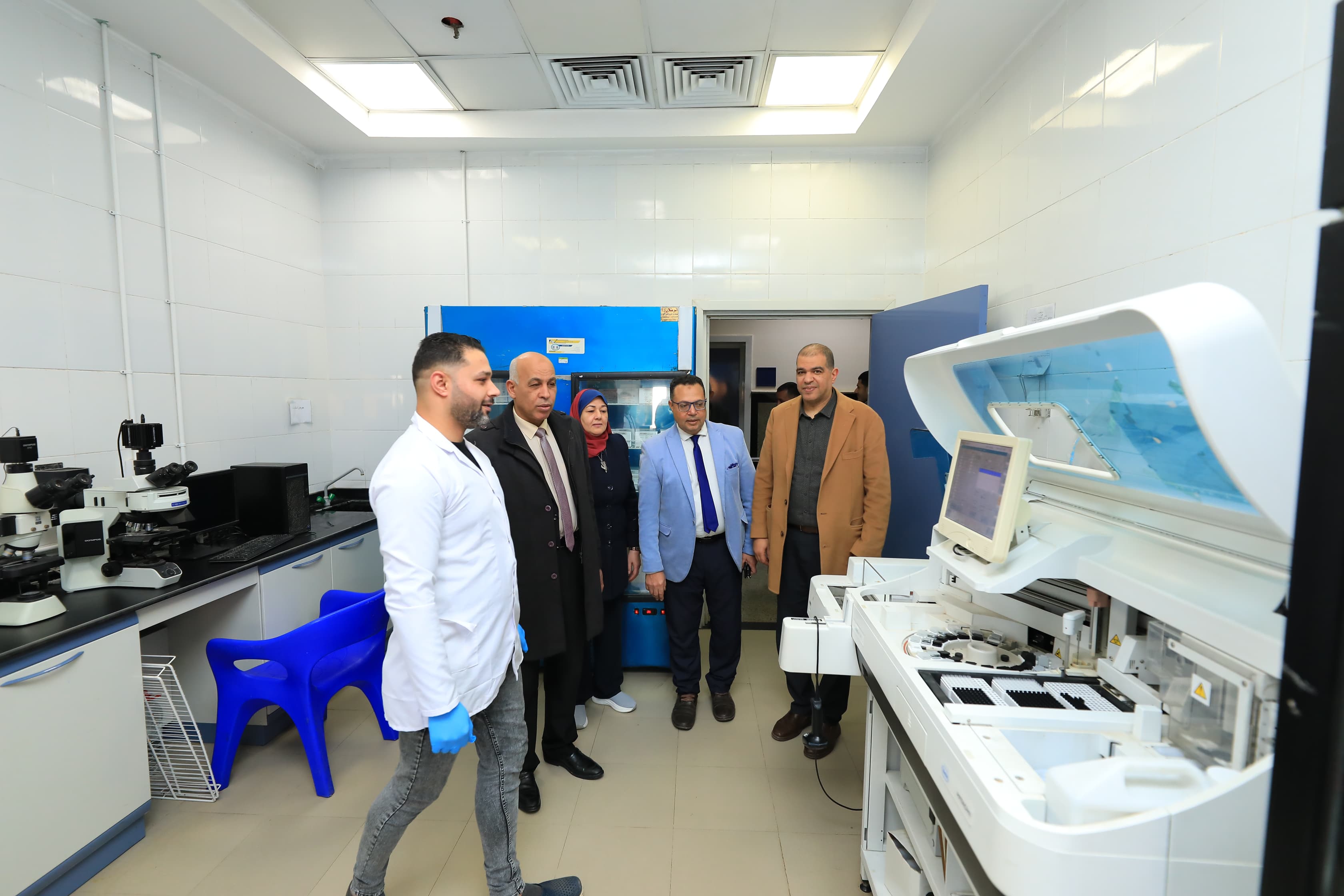 Prof. Ismail Ismail Ibrahim, Acting President of the University, conducts an extensive inspection tour inside the University Hospital to follow up the workflow and assess the level of medical services provided to patients. He visits various departments and medical laboratories as part of
