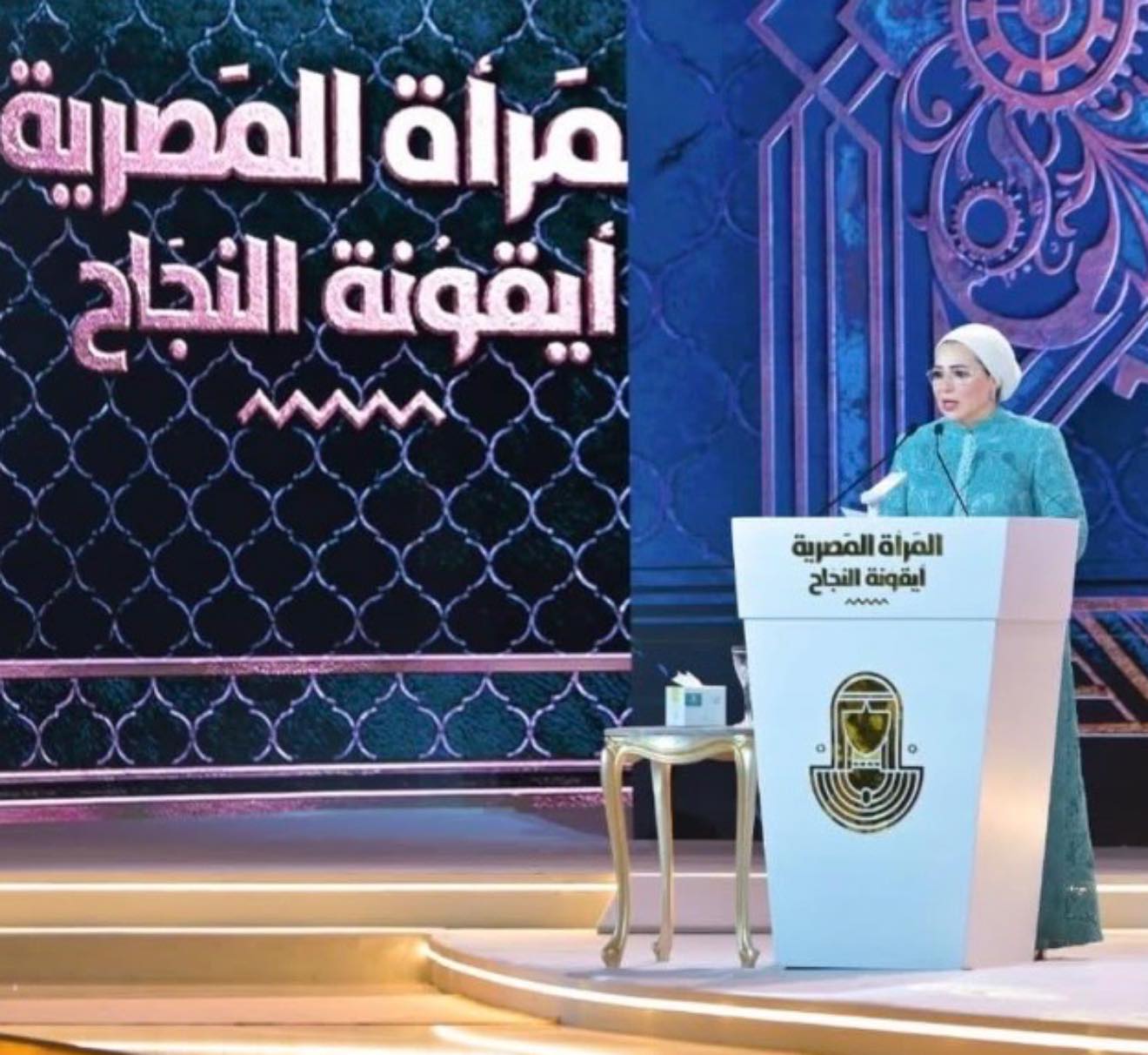 وألقت السيدة الدكتورة انتصار السيسي كلمة خلال الاحتفالية أكدت فيها تقدير الدولة للدور الذي تقوم به المرأة المصرية في بناء المجتمع، مشيرة إلى أن القيادة السياسية تولي اهتماما كبيرا بتمكين المرأة ودعمها في جميع المجالات، إيمانا بدورها كشريك أساسي في تحقيق التنمية وبناء الجمهورية الجديدة وكرمت السيدة الدكتورة انتصار السيسي، مجموعة من ملهمات مصر، في النسخة السنوية من احتفالية المرأة المصرية أيقونة النجاح..