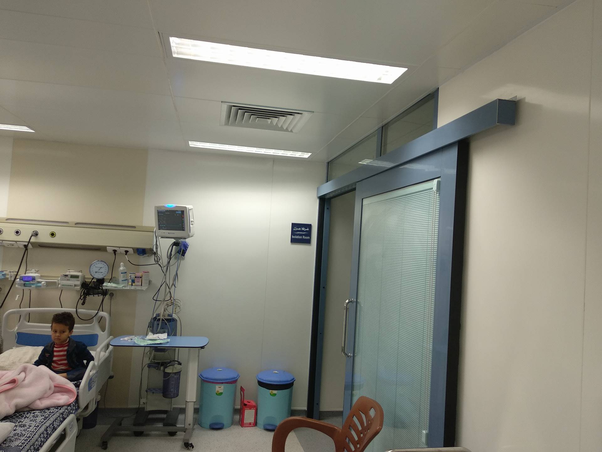 - عربة للطوارى (تحتوى على العلاج اللازم لجميع حالات الطوارى والمناظير الحنجرية )