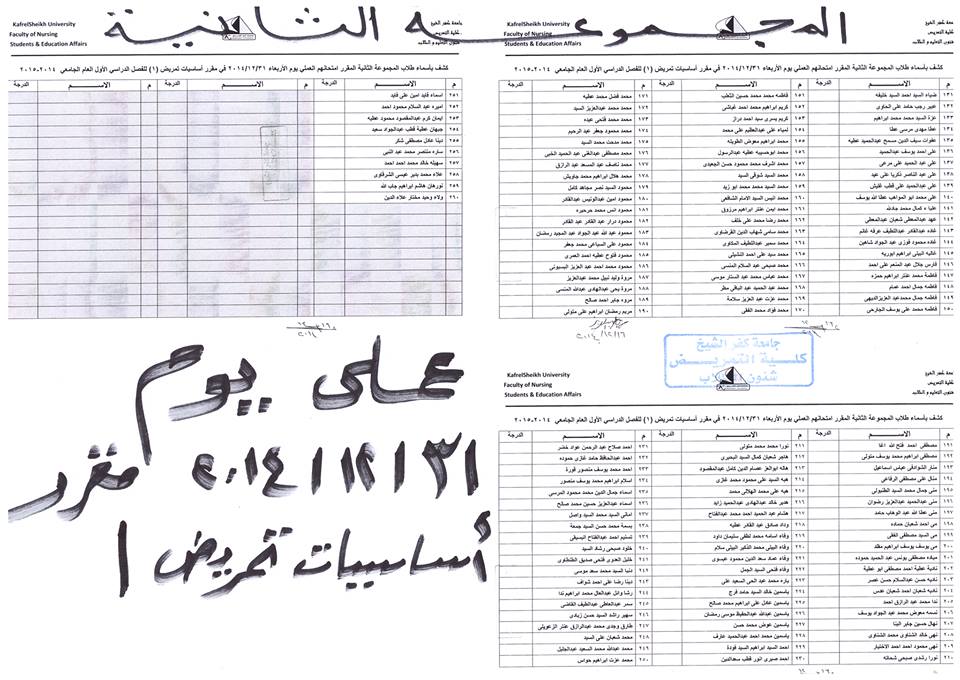 مجموعات العملى لمقرر ااساسيات تمريض المجموعه الثانيه