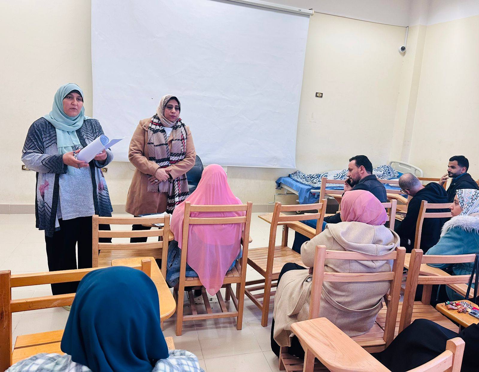 نظّمت كلية التمريض ورشة عمل بعنوان “إجراءات السلامة والصحة في حالات الطوارئ”، اليوم الاربعاء 25 /3 /2026وذلك في إطار حرص الكلية على تعزيز ثقافة السلامة ورفع مستوى الوعي لدى العاملين بكيفية التعامل مع المواقف الطارئة.