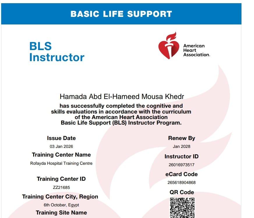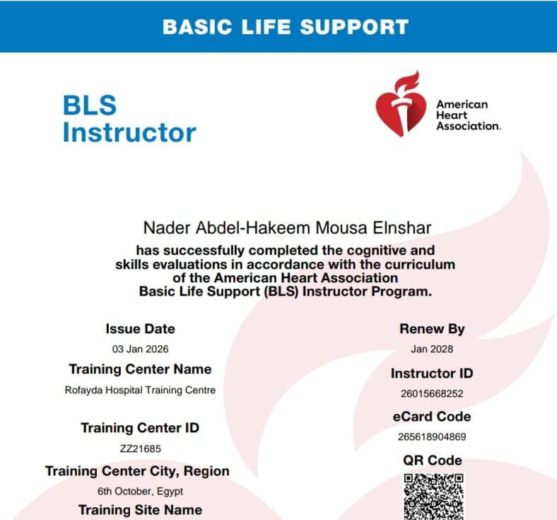 رخصة مدرب معتمد لإنعاش القلب الأساسي (BLS Instructor)