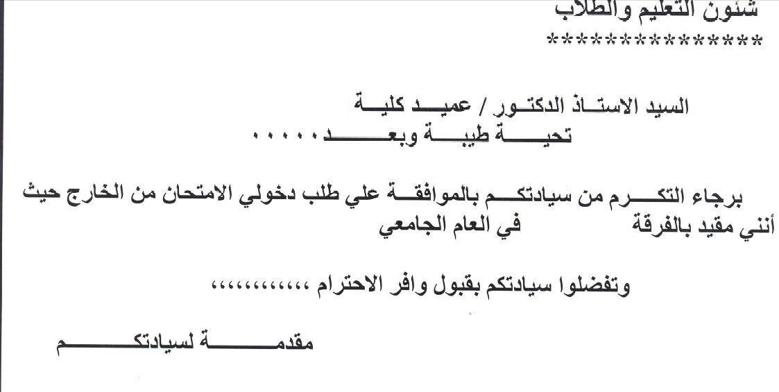 - يحول الطلب الى امين الكلية للتوقيع وختم الطلب بخاتم الكلية