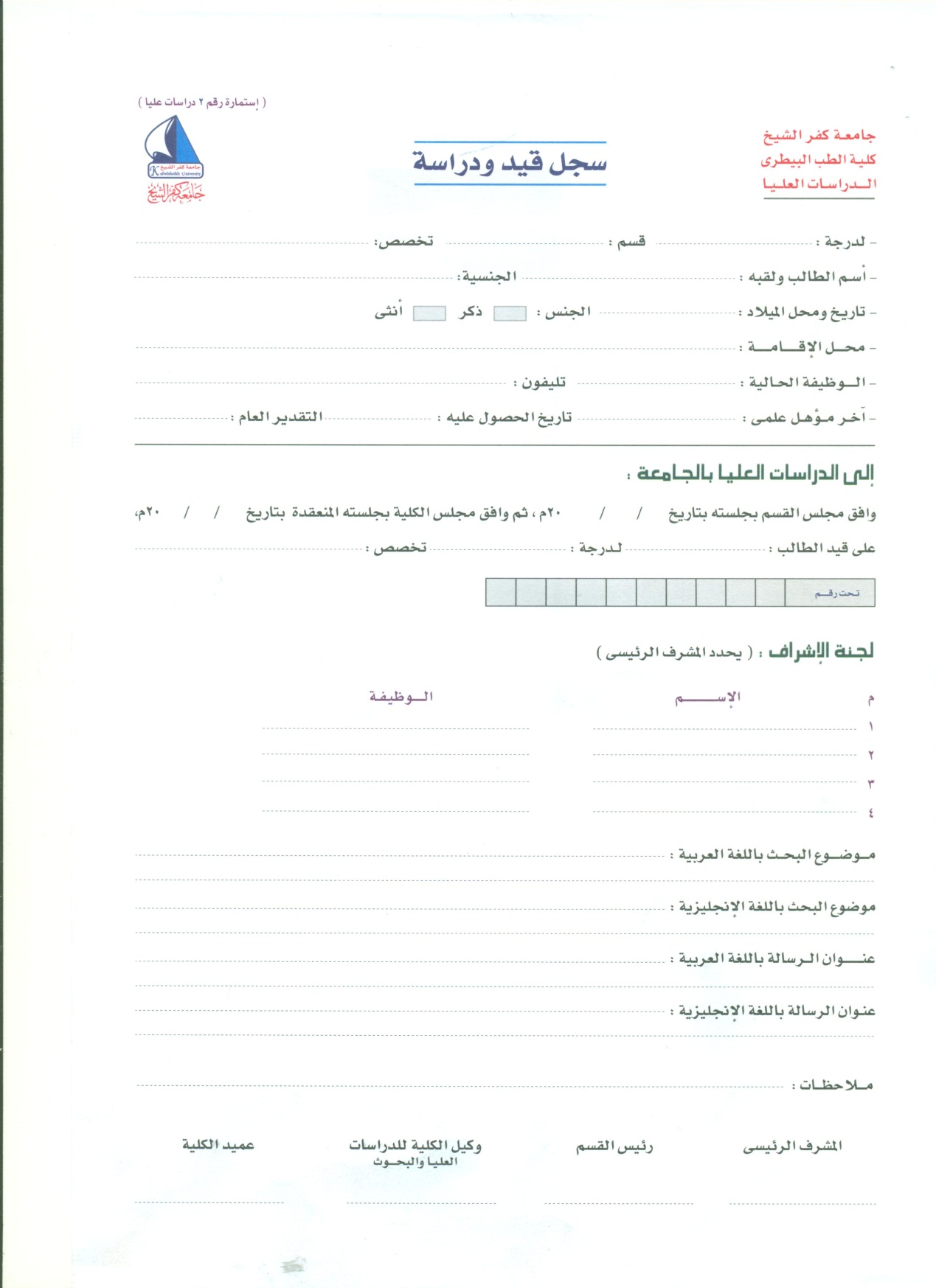 الماجستير والدكتوراة يحول الطلب من وكيل الكلية للدراسات العليا الى مجلس الكلية