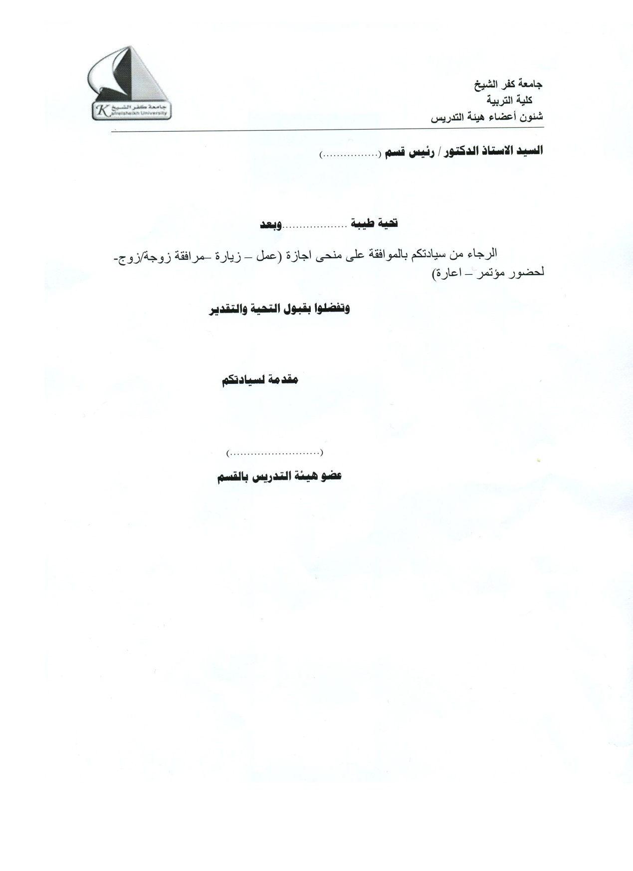 طلب مقدم الى مدير ادارة شئون اعضاء هيئة التدريس