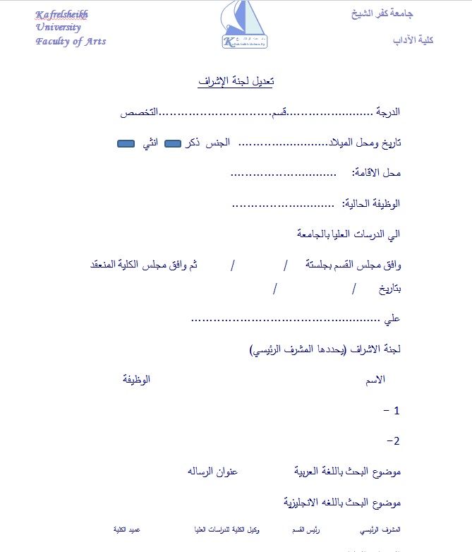 - فى حالة الماجستير والدكتوراة يحول الطلب من وكيل الكلية للدراسات العليا الى مجلس الكلية