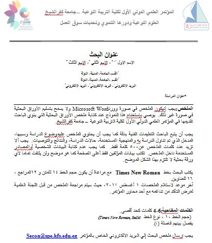 لتحميل نموذج لكيفية إعداد ملخص البحث باللغة العربية