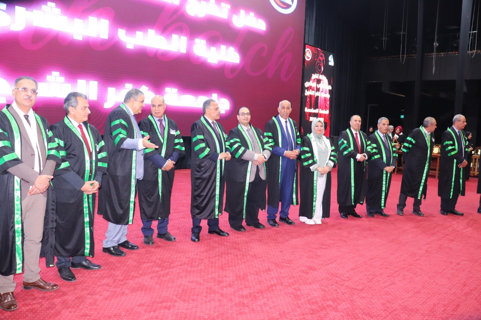 وفي ختام كلمته قدم رئيس الجامعة، خالص التهاني للخريجين، ولأسرهم الكريمة، ولأعضاء هيئة التدريس الذين أدوا رسالتهم بإخلاص، داعيًا الله عز وجل أن يوفقهم، وأن يجعل علمكم وعملكم نورًا وشفاءً، وأن يحفظ مصرنا الغالية، ويديم عليها نعمة الأمن والاستقرار، ويقودها دائمًا نحو التقدم والازدهار.