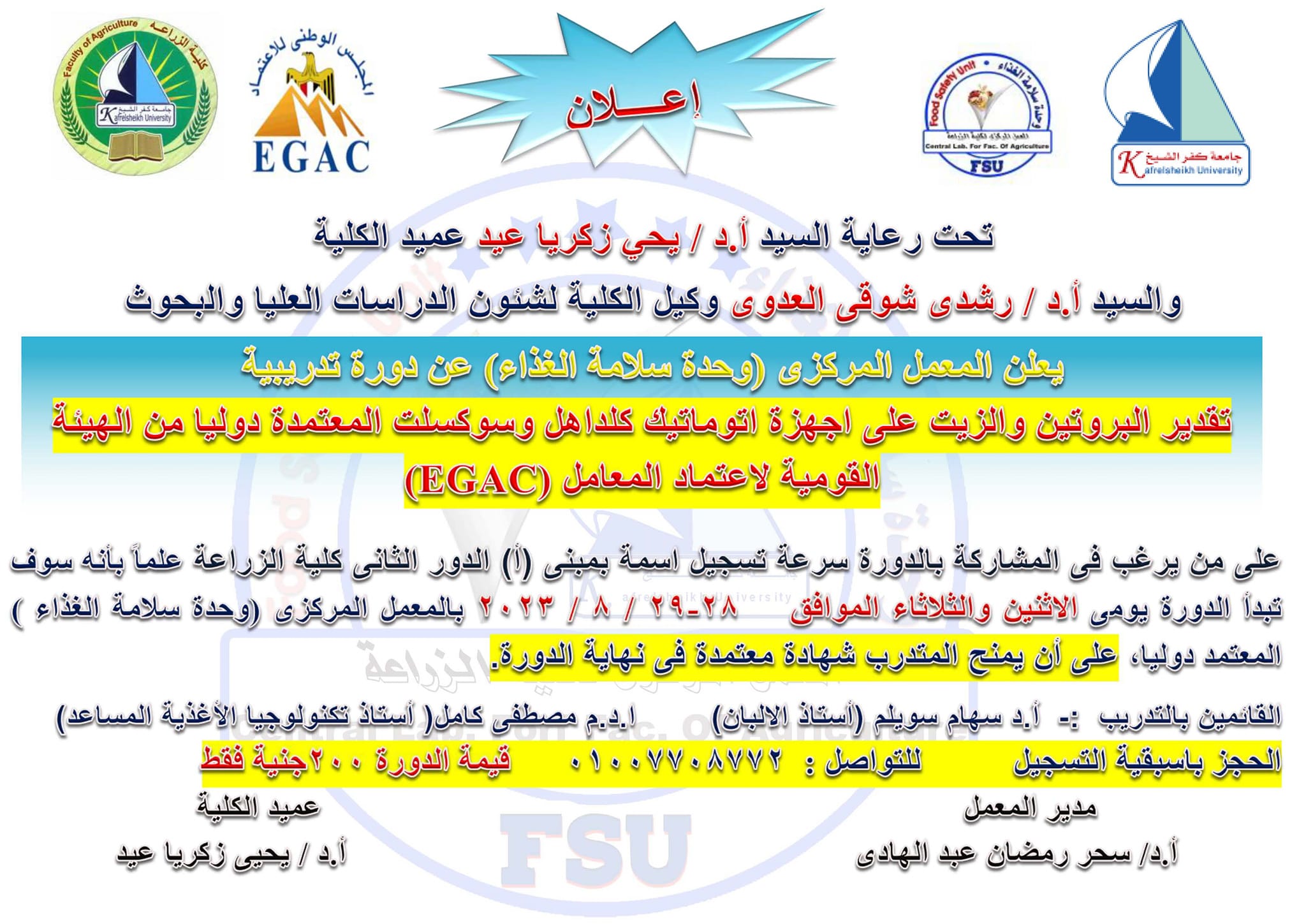 إعلان عن دورة تدريبية بالمعمل المركزي (وحدة وسلامة الغذاء)