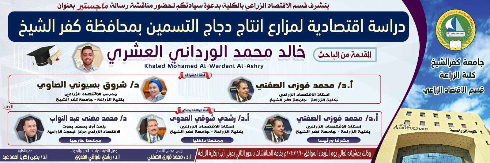 مناقشة ماجستير للطالب خالد محمد العشري بقسم الإقتصاد الزراعي