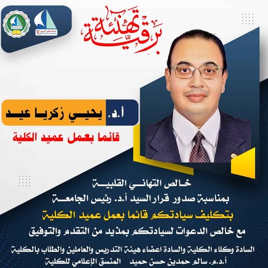 تهنئة للأستاذ الدكتور يحيي زكريا عيد