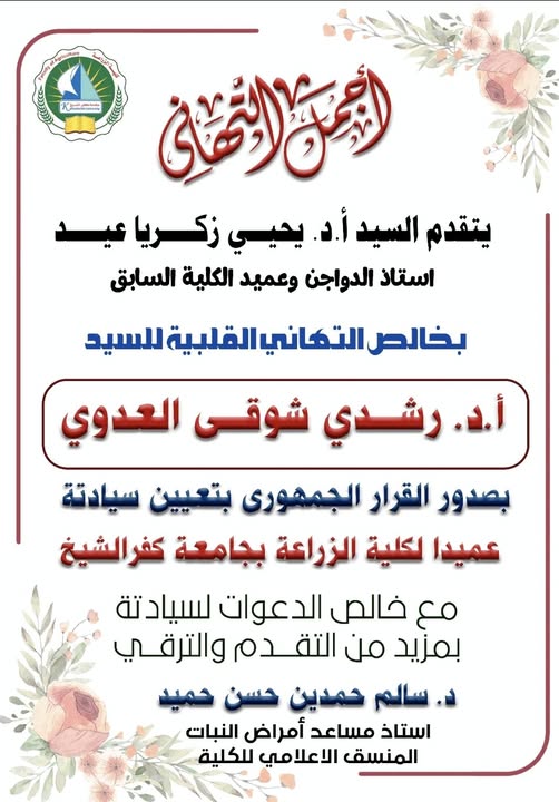 الاستاذ الدكتور / رشدي العدوي عميدا لكلية الزراعة