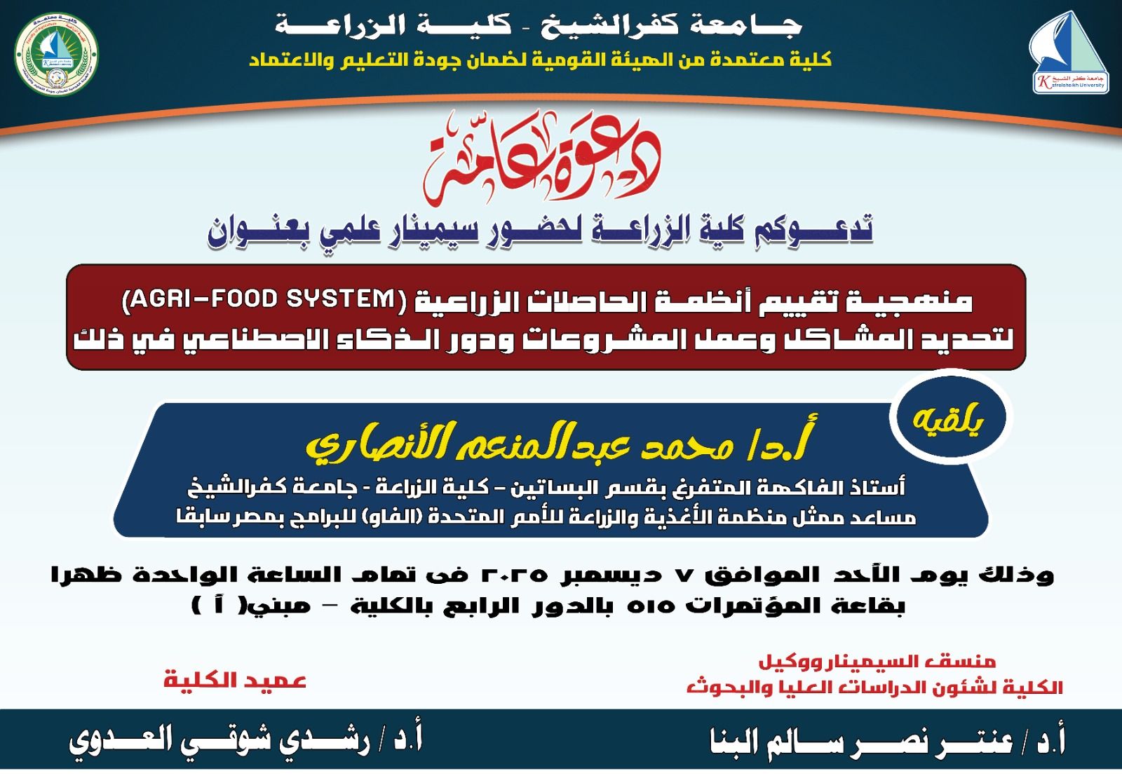 دعوة عامة لحضور سيمينار علمي