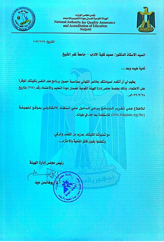 شهادة اعتماد البرنامج من الهيئة القومية لضمان جودة التعليم والاعتماد