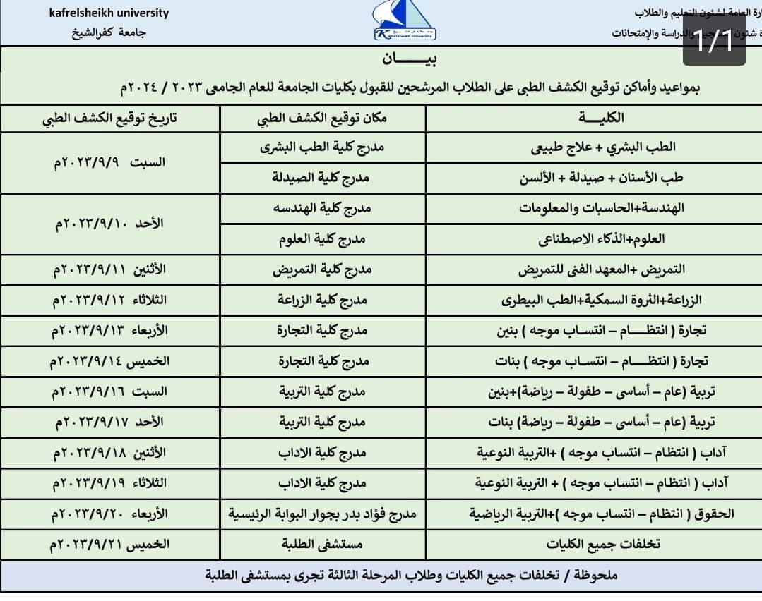 · لمعرفة اماكن الكشف الطبي اضغط هنا، للدخول على رابط التسجيل للكشف الطبي اضغط هنا