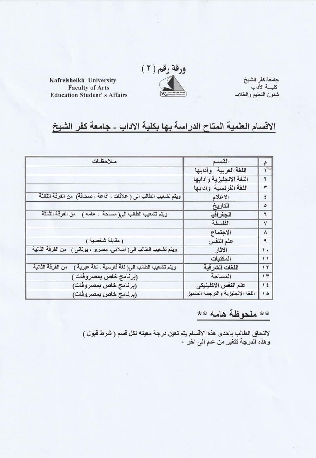 · لمعرفة الاقسام العلمية المتاح الدراسة بها بكلية الآداب اضغط هنا