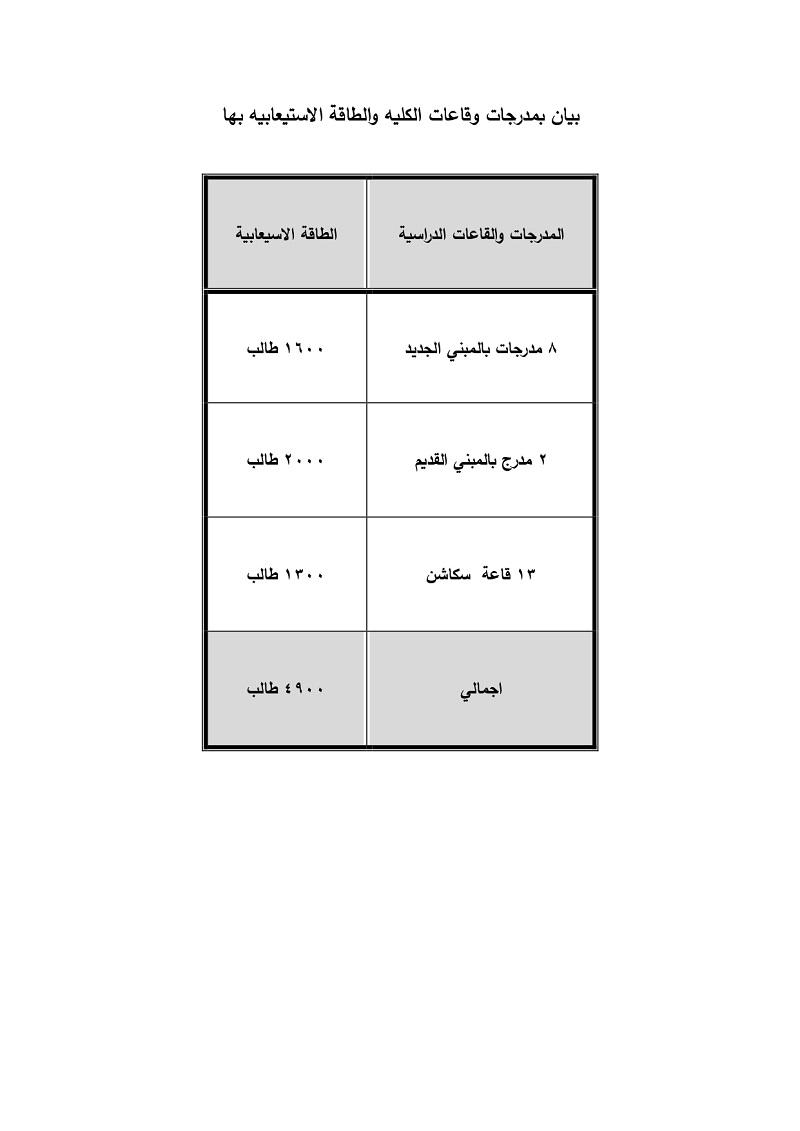 بيانات بالقاعات والمدرجات التدريسية بالكلية