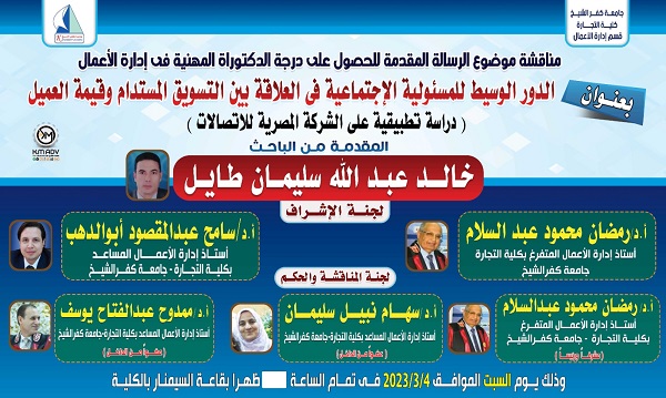 ü القيام بمناقشة عدد من الرسائل العلمية في مرحلة الماجستير و الدكتوراه
