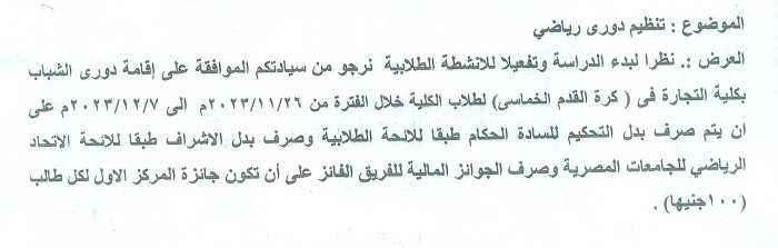 دعوة الطلاب للمشاركة بدوري كرة القدم الحماسية بالكلية