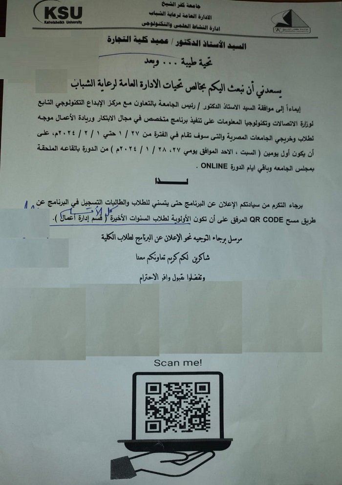 دعوة الطلاب و خريجي الجامعات المصرية لحضور برنامج متخصص في مجال الابتكار و ريادة الاعمال