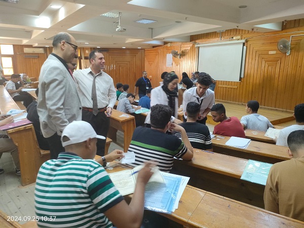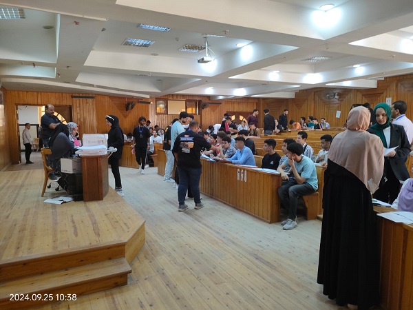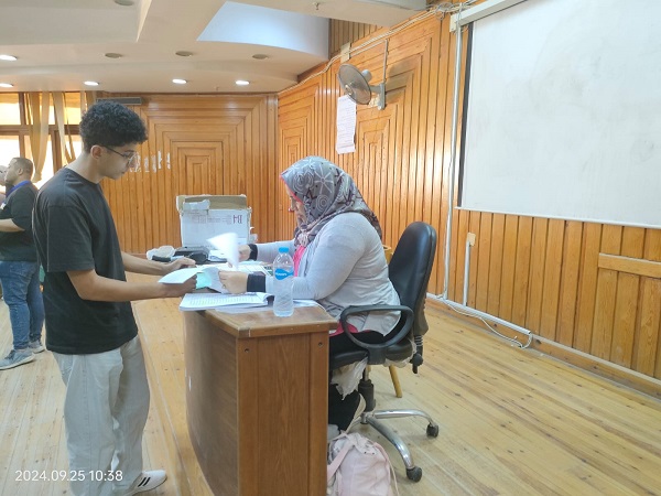 عميد الكلية و وكيل الكلية للشئون التعليم و الطلاب يتفقدان عملية استقبال أوراق تقديم طلاب الفرقة الأولى بالكلية