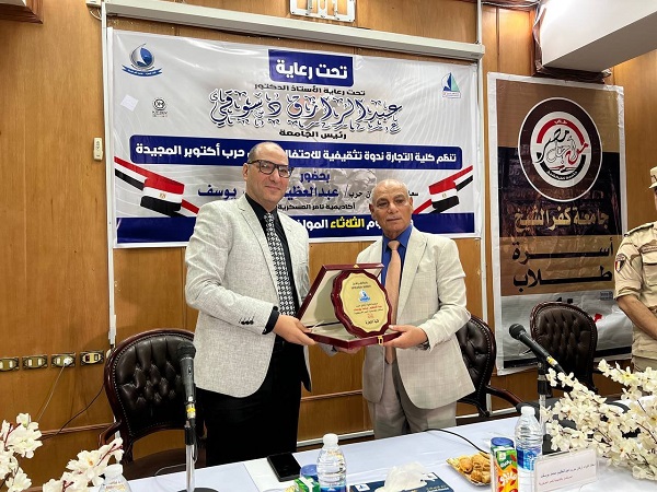 نظمت كلية التجارة جامعة كفرالشيخ ندوة تثقيفية تحت عنوان " حرب أكتوبر ــ حرب العزة والكرامة " وذلك بمناسبة ذكرى إنتصارات حرب أكتوبر المجيدة، وذلك يوم الثلاثاء الموافق 8/10/2024م بقاعة السيمينار بكلية التجارة بحضور سعادة اللواء أركان حرب/ عبدالعظيم محمد يوسف المستشار بأكاديمية ناصر العسكرية، وحضور سعادة العقيد/ حامد مهاب مطر مدير إدارة التربية العسكرية بجامعة كفرالشيخ.