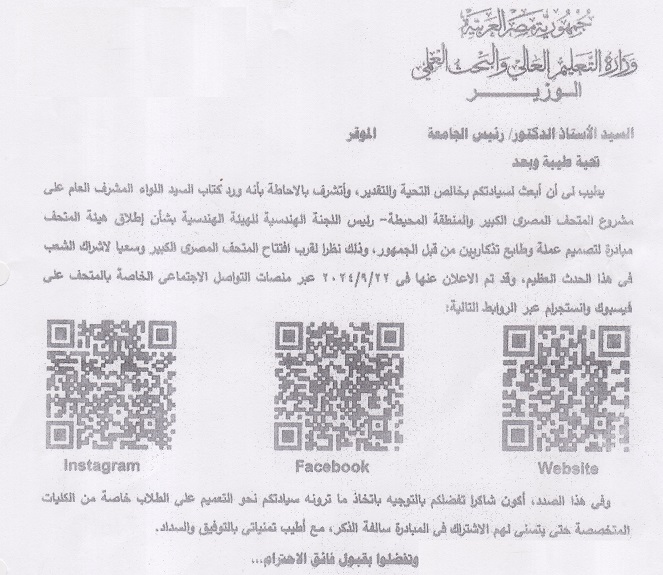 مسابقة تنظمها إدارة المتحف المصري الكبير لطلاب الجامعات لتصميم عملة وطابع بمناسبة الافتتاح