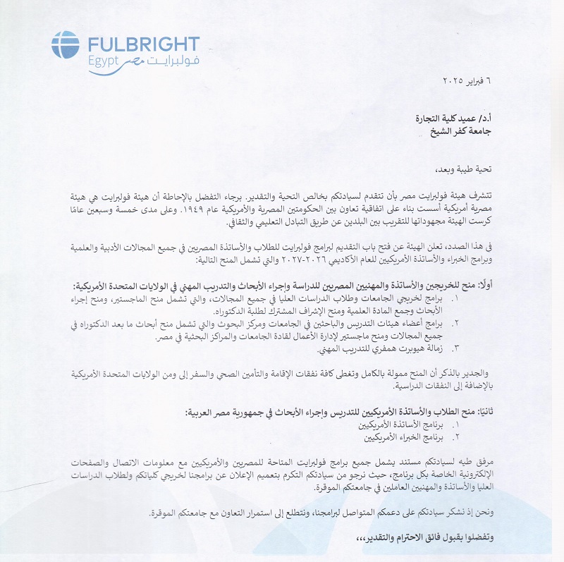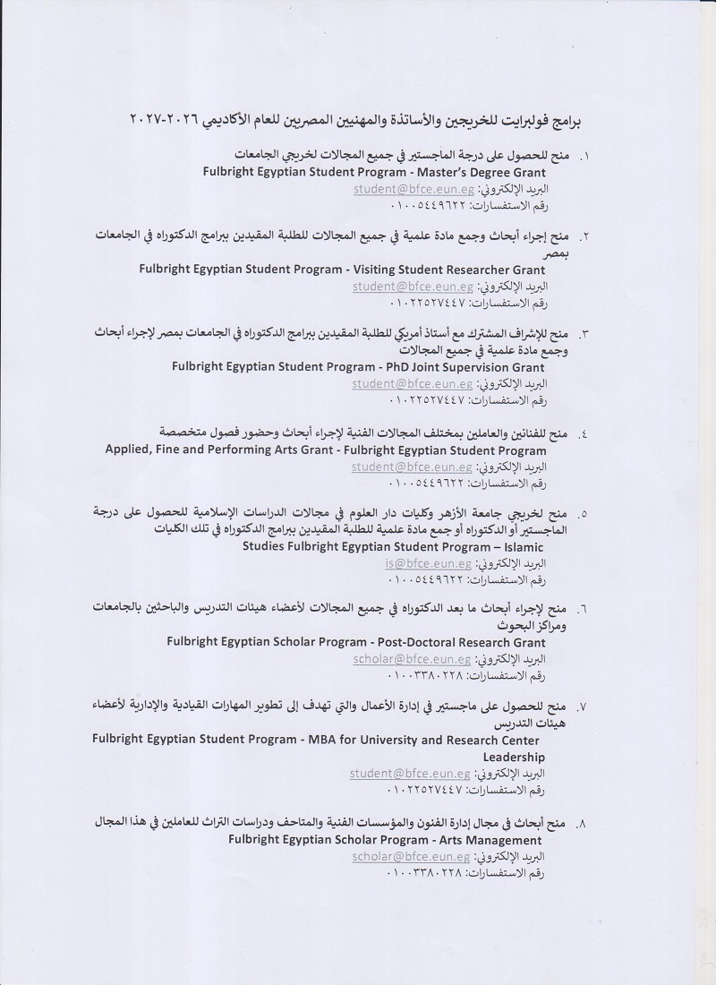 فتح باب التقديم لبرامج فولبرايت للطلاب و الاساتذه المصريين للعام الأكاديمي 2026-2027