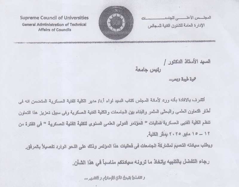 دعوة لحضور المؤتمر الدولي العلمي السنوي للكلية الفنية العسكرية