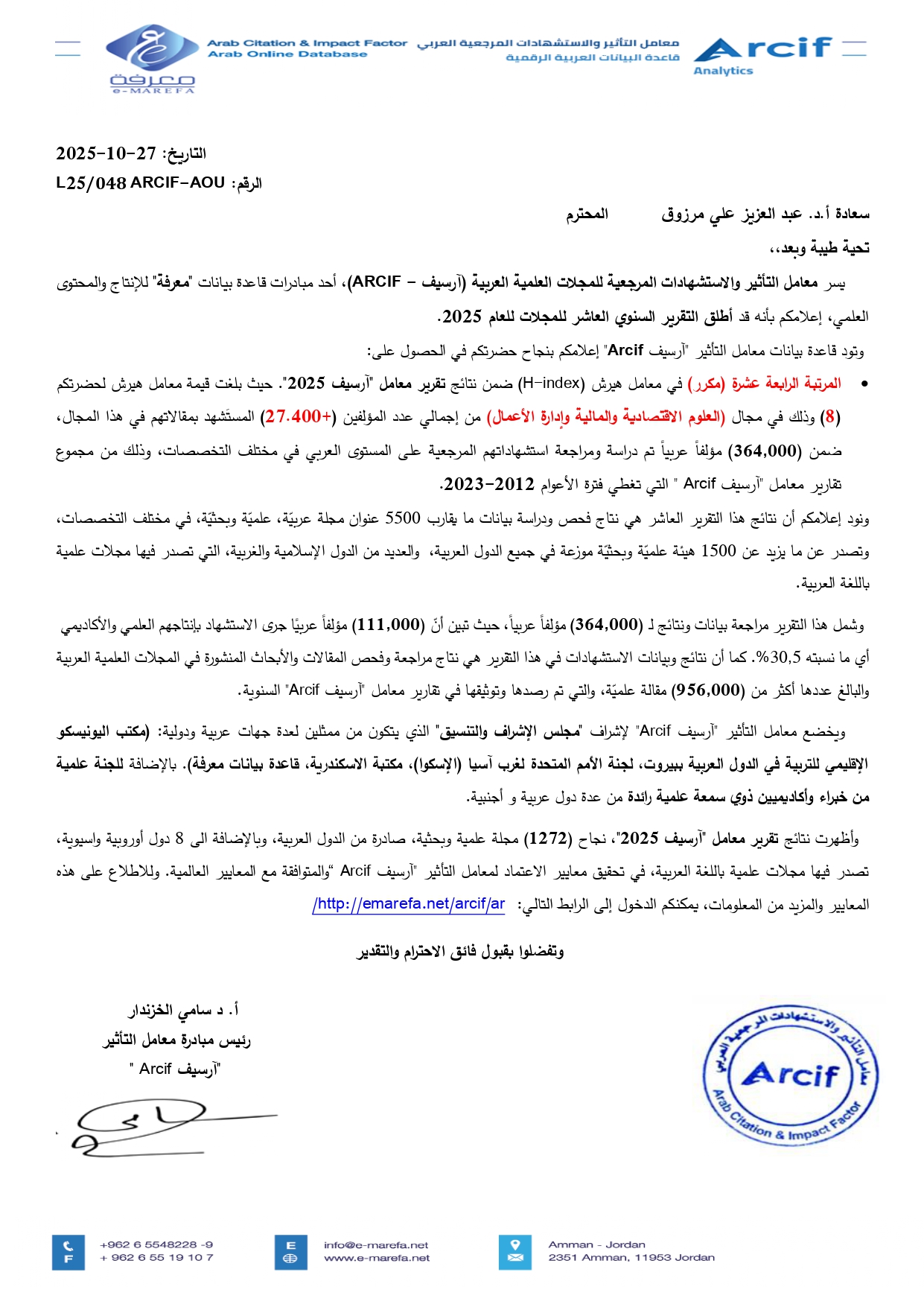 خالص التهنئة للأستاذ الدكتور / عبد العزيز مرزوق