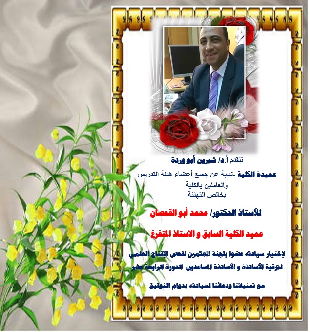 تهنئة أ.د/ محمد أبو القمصان بمناسبة اختيار سيادته عضوا بلجان المحكمين