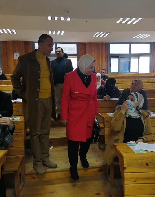 في إطار متابعة امتحانات الفصل الدراسي الأول للعام الجامعي 2021-2022 بالكلية تفقدت السيدة أ.د / شيرين أبو وردة - عميدة الكلية والسيد أ.د/ حسين مصيلحي – وكيل الكلية لشئون الدراسات العليا و البحوث امتحانات الدراسات العليا المهنية و ذلك للتأكد من انتظام سير الامتحانات وتهيئة المُناخ النفسي الملائم وتوفير الرعاية الكاملة للطلاب بما يضمن توفير جميع وسائل الراحة