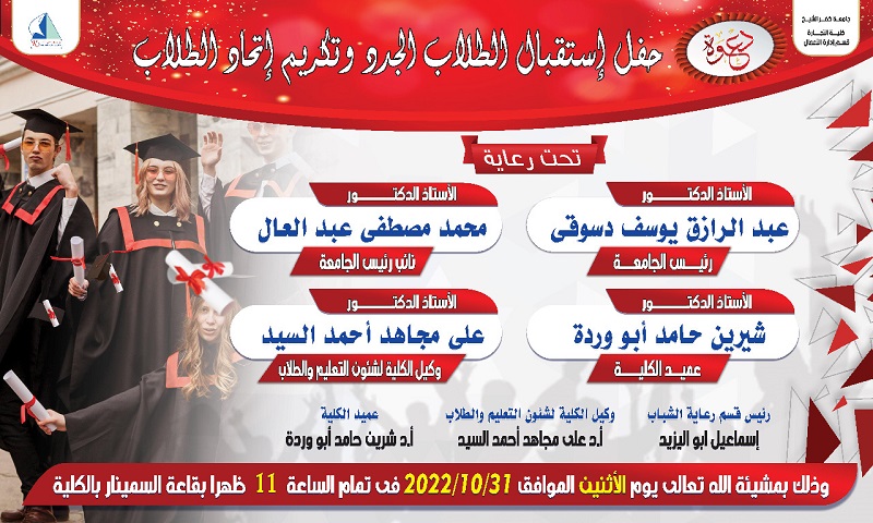 دعوة لحضور حفل استقبال الطلاب الجدد و تكريم اتحاد الطلاب