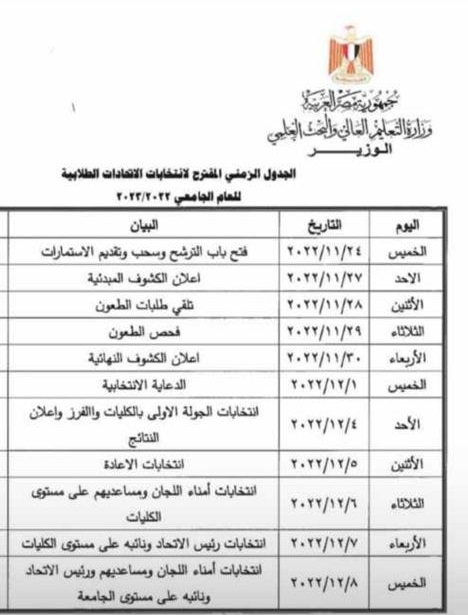 غدا الخميس فتح باب الترشح لانتخابات اتحاد الطلاب للعام الجامعي 2022-2023