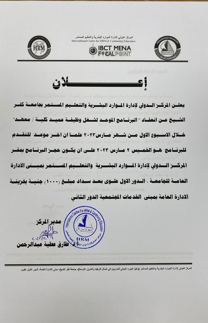 إعلان عن دورة البرنامج الموحد لشغل وظيفة عميد كلية
