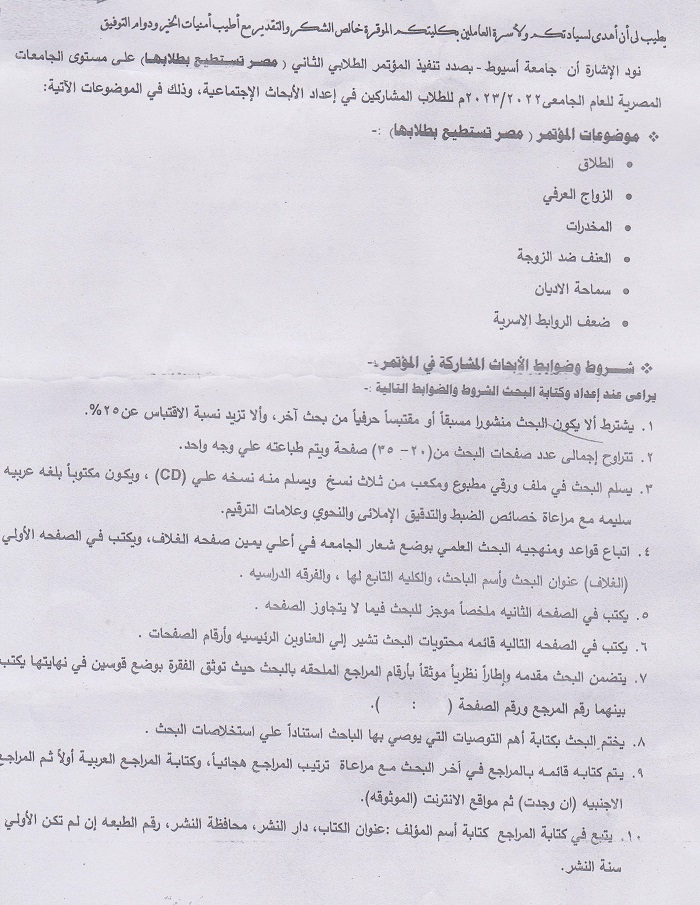 دعوة الطلاب للمشاركة في المؤتمر الطلاب الثاني لجامعة أسيوط : مصر تستطيع بطلابها