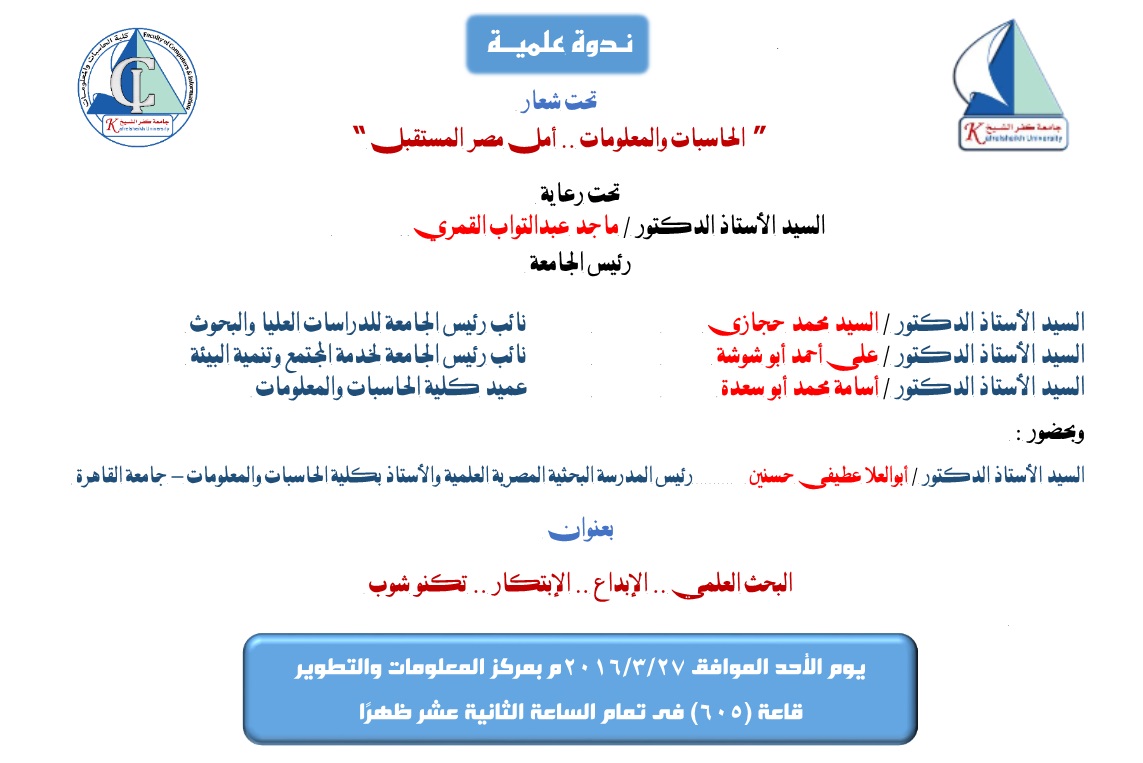 دعوة لحضور ندوة علمية بعنوان "الحاسبات والمعلومات .. أمل مصر المستقبل"