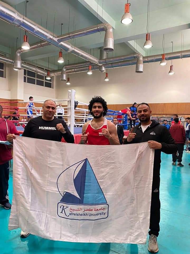 يهنىء الاستاذ الدكتور /اسامه ابوسعده عميد الكلية الطالب حسام حماده حسين المقيد بالفرقة الثانيه لحصوله على المدالية الفصية للملاكمه وزن 86ك ببطولة