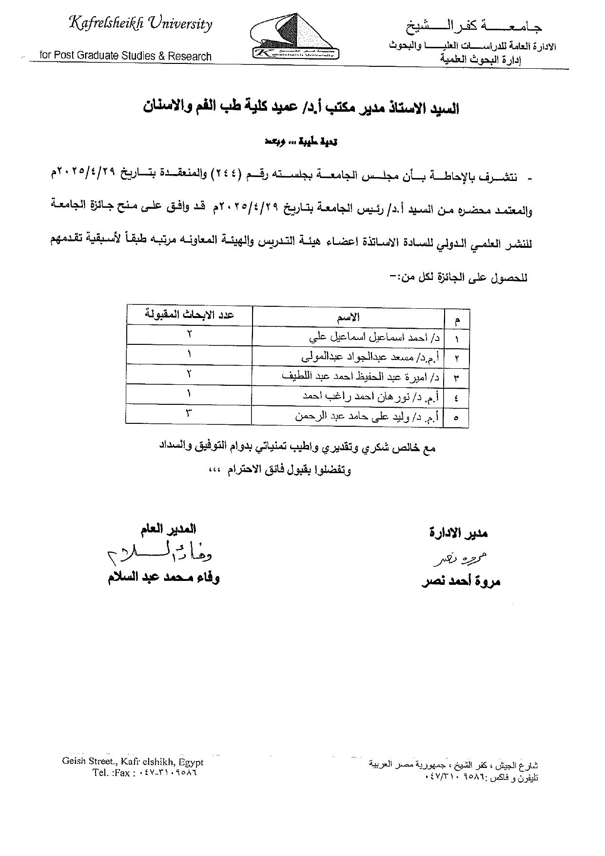 جوائز النشر العلمي للعام الجامعي 2025/2024م للتحميل اضغط هنا