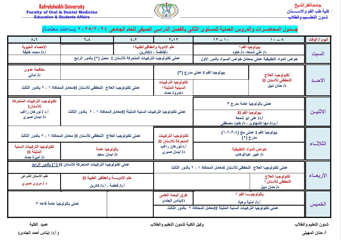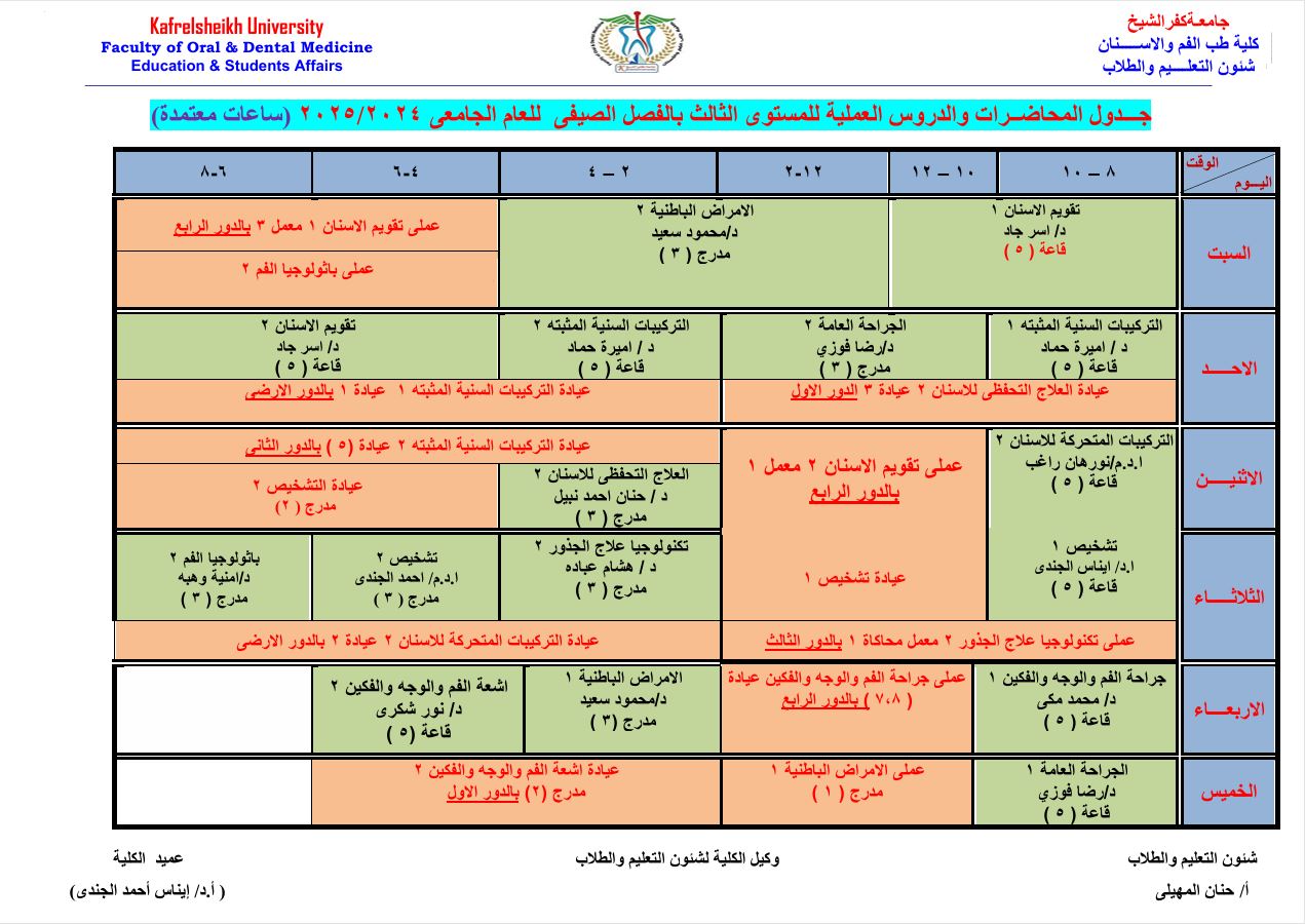 جداول المحاضرات والسكاشن للفصل الدراسي الصيفي للمستوي الأول والثاني والثالث (ساعات معتمدة) للعام الجامعي 2025/2024م