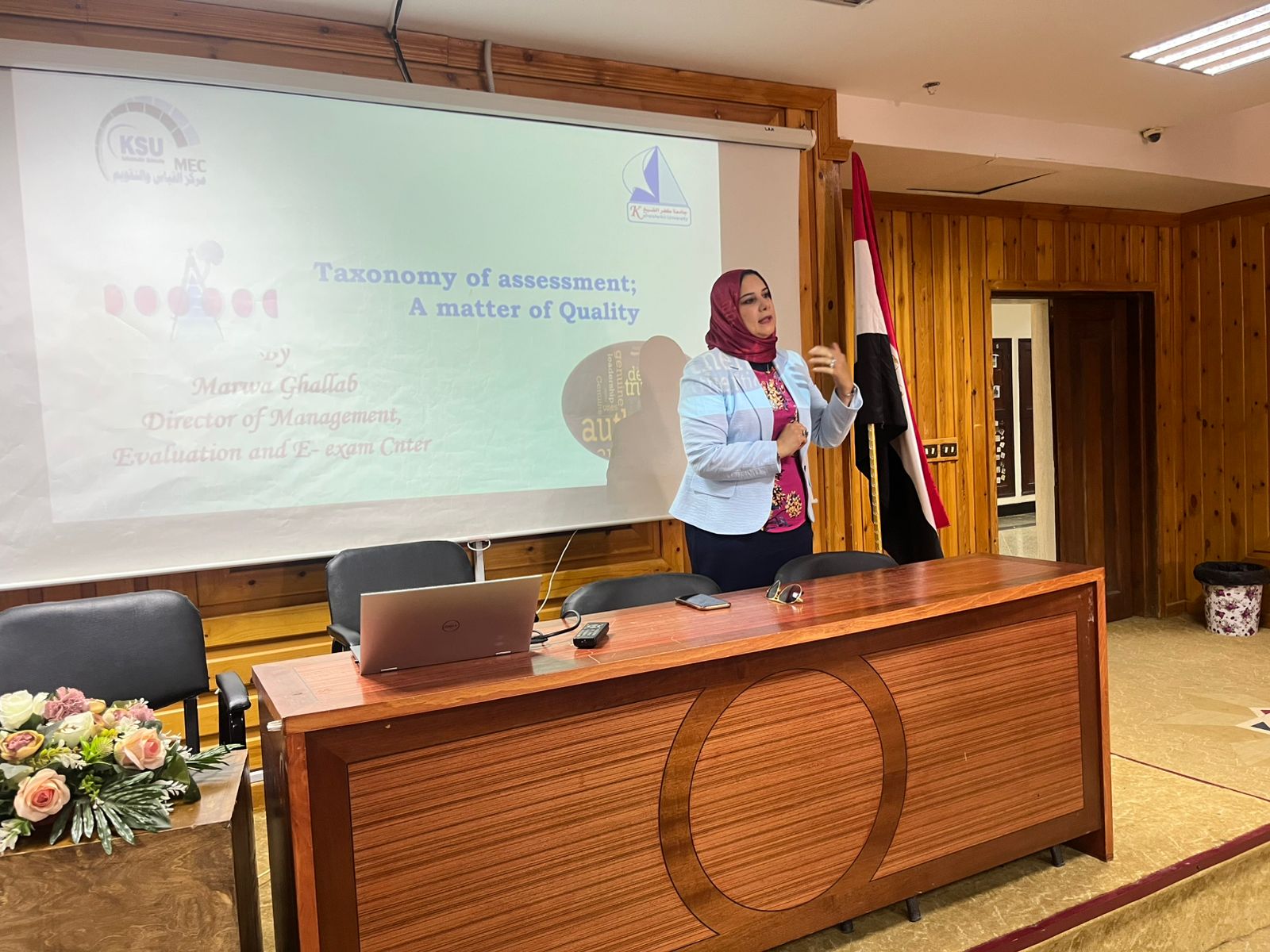 محاضره بعنوان "Item bank construction لأعضاء هيئة التدريس بكلية طب الفم والاسنان