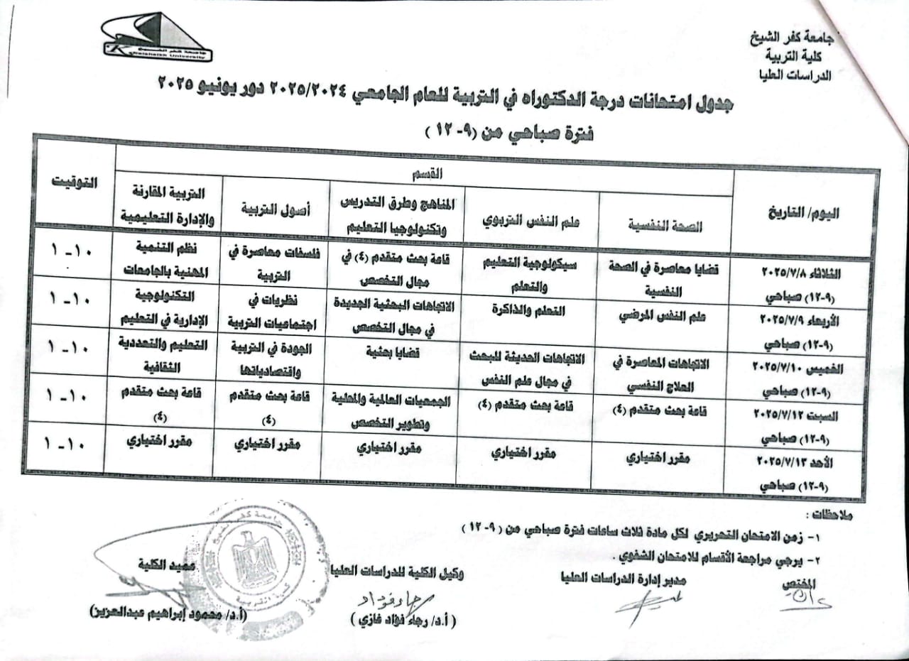 أطيب تمنيات كلية التربية - جامعة كفر الشيخ لجميع أبنائها الطلاب والباحثين بالنجاح والتوفيق....،